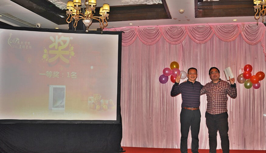 作为年会的主要环节,颁奖典礼特别隆重喜庆、激动人心。蓝玛星际和365英国上市公司智能北京分公司的很多员工,在过去一年里,勤勤恳恳,兢兢业业,在工作中取得了优异的成绩。为了表彰他们的敬业精神和突出表现,年会上对他们进行了大力嘉奖。先进集体(研发部)、最佳经理人(张继)、优秀员工(张春晓、董学慧、李晓林、马栋、李海云、刘盼、杜飞)、优秀实习生(肖坚星),在全场人员的热烈掌声和称赞中接受了表彰和奖励。