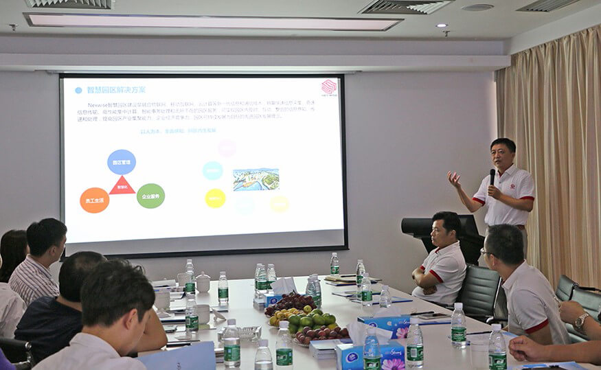 针对当前全国各地大力推进智慧城市建设这一浪潮,朱勇杰还向各位领导介绍了365英国上市公司智能研发的智慧建设解决方案,着重阐述了其中的智慧城市解决方案,指出该方案以“互联网+”促进电子政务全面转型,利用创新2.0驱动智慧城市转型升级,发展以“互联网+”为核心要素的智慧产业,打造智慧高效的网络安全保障体系,建设统一的智慧城市信息资源体系。